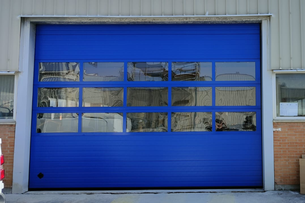 La risposta di CENTRO SERVICE alla sfida del cliente è stata l’installazione di un portone sezionale industriale su misura, progettato per superare ogni aspettativa. Un modello che combina la solidità strutturale con un design intelligente, caratterizzato da ampie sezioni vetrate. Queste finestrature, realizzate con materiali ad alta resistenza, non solo migliorano la luminosità interna dell’ambiente di lavoro, riducendo la necessità di illuminazione artificiale, ma permettono anche un controllo visivo costante sulle attività interne ed esterne.